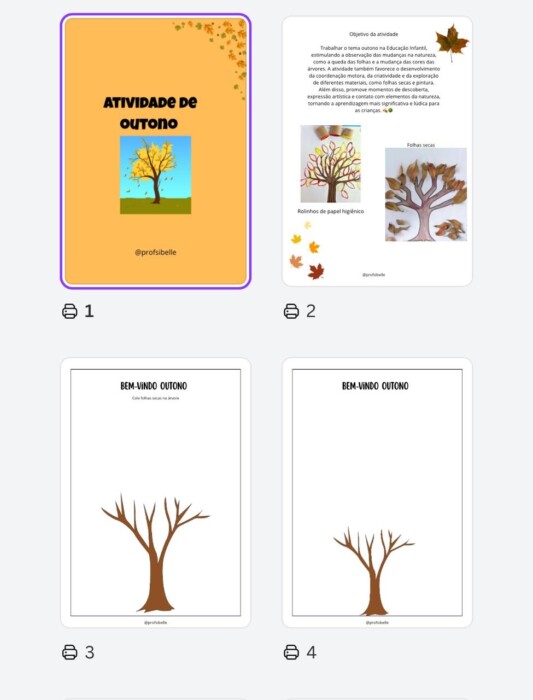 Este material foi desenvolvido para trabalhar o tema outono na Educação Infantil de forma lúdica e significativa. A proposta convida as crianças a observarem as características da estação, como a queda das folhas, e a construírem árvores utilizando folhas, carimbos ou colagem. Durante a atividade, são estimuladas habilidades importantes como coordenação motora fina, percepção visual, criatividade e exploração de diferentes materiais, além de promover o contato com elementos da natureza e ampliar o conhecimento sobre as mudanças das estações do ano. 🍂