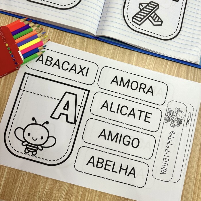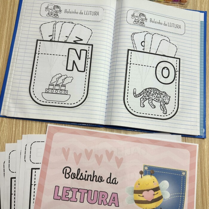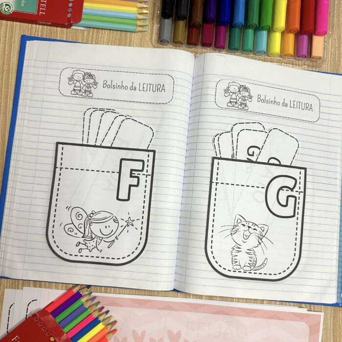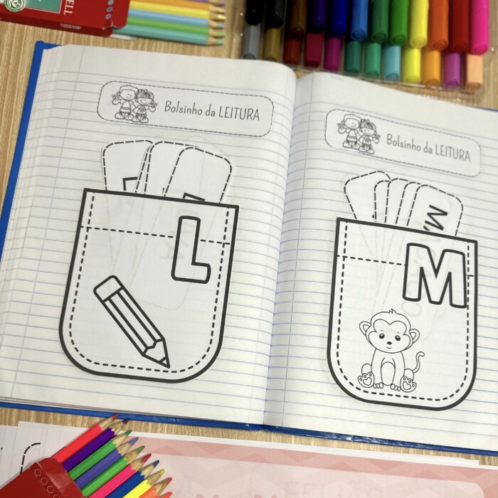 O arquivo Bolsinho da leitura inclui 26 páginas de atividades interativas para trabalhar as letras do alfabeto. Essa proposta oferece a possibilidade de trabalhar a leitura de palavras e as letras do alfabeto an mesmo tempo, em que a criança poderá recortar e colar bolsinho em seu caderno e realizar a leitura das