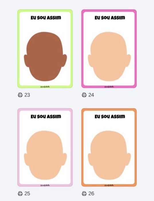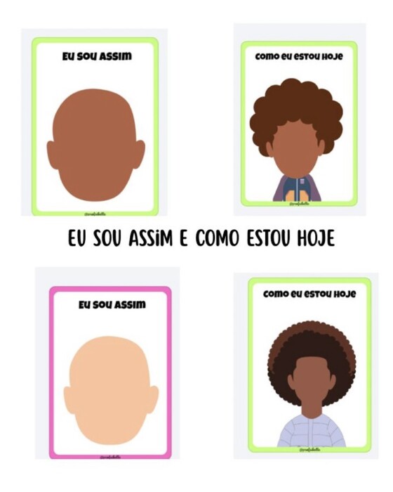 O conjunto é composto por cartões “Eu sou assim”, que favorecem a construção da identidade e o reconhecimento das características físicas, e por cartões “Como estou hoje”, que possibilitam a expressão do estado emocional e das vivências do dia.