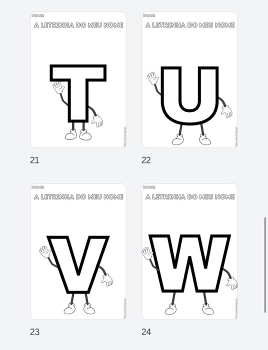 O combo inclui 8 arquivos completos, com diversas atividades práticas que estimulam a identificação, associação e exploração da letra inicial, favorecendo o desenvolvimento da linguagem e da identidade da criança.